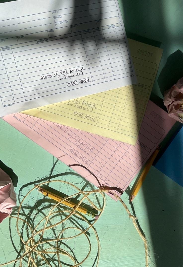 Marc’s most recent work "Death Of The Author (In Triplicate)" has a philosophical detective at the heart of it, but also probes the power behind the throne of a writer who is writing about a writer (hence the "in triplicate"). It's published by Corona/Samizdat in pocket-sized paperback.